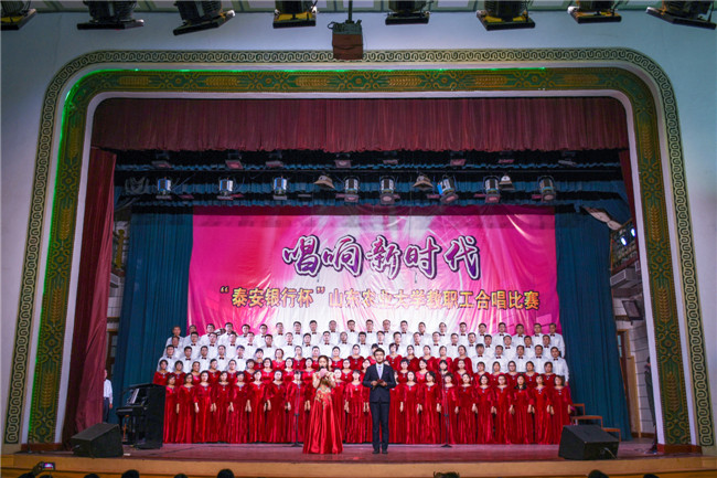 在全校师生深入学习贯彻党的十九大精神,沿着学校第七次党代会确定的目标任务,撸起袖子加油干,为创建高水平大学而不懈努力的时刻,由校工会主办的“唱响新时代‘泰安银行杯’山东农业大学教职工合唱比赛”决赛,于12月19日晚在北校区大礼堂隆重举行。校领导张宪省、朱莉、嵇景涛、张明志、吴衍涛、张然、司金贵,泰安银行副行长李成山等出席此次活动。