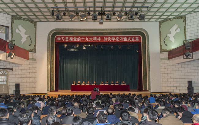 12月12日,学校举行“学习贯彻党的十九大精神,加快学校内涵式发展”大会,校长张宪省对党的十九大精神作了宣讲,对学校下一步的工作提出要求,强调要把党的十九大精神转化为推动学校各项事业发展的强大思想武器,凝心聚力、求真务实,锐意进取、埋头苦干,走好内涵式发展道路,推动高水平大学建设再上新水平。党委副书记朱莉主持会议,校领导杨天梅、高东升、嵇景涛、张明志、王振林、吴衍涛、张然、司金贵出席会议,全体教师、全体科级及以上干部参加会议。