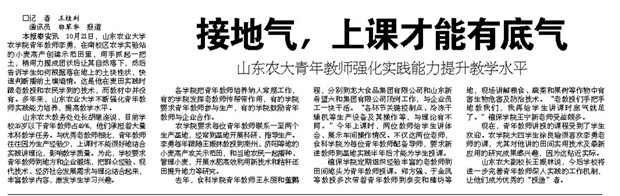 11月9日,《大众日报》刊发文章,报道山东农业大学强化对青年教师实践能力培养,让青年教师在实践中增长才干,课堂授课更加有了底气。