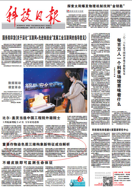 11月28日,《科技日报》在头版刊发新闻,报道我校李平华团队在重要作物染色质研究领域取得重大突破。这是2017年《科技日报》第三次在头版为山东农业大学点赞。