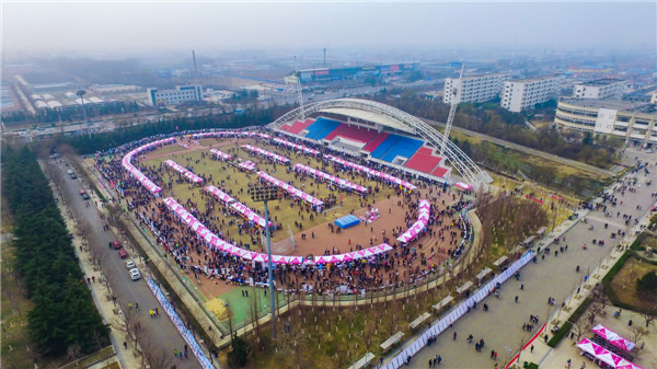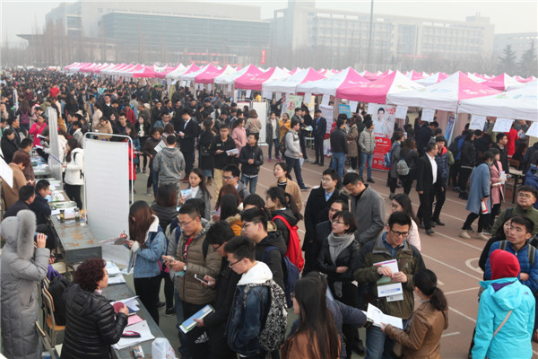 3月5日上午,山东省2017年农林水类毕业生就业市场在南校区体育场举办。来自全省17个地市以及北京、上海、广东、江苏、天津等23个省市的1200多家用人单位到会招聘,提供4万多个需求岗位,吸引近2万名农林水类应往届毕业生前去现场求职。
