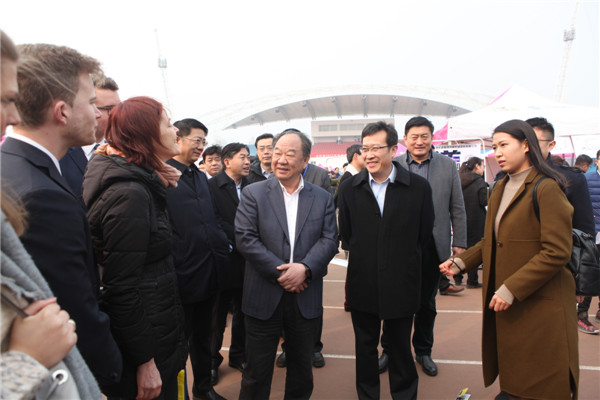 校领导徐剑波、张宪省、董新胜、朱莉、高东升、嵇景涛、吴衍涛,省人力资源与社会保障厅党组副书记、副厅长夏鲁青,泰安市副市长袁久党走进招聘市场,与用人单位和毕业生亲切交谈,了解毕业生就业形势,并实地考察我校资环学院创新创业团队工作室“创客驿站”。夏鲁青还主持召开座谈会,与企业、毕业生代表座谈,了解用人单位对毕业生的需求状况,倾听学生的求职创业心声。