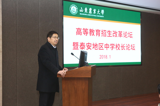 1月20日,学校邀请泰安地区各高中校长、年级主任来校,共商新招考时代高等教育和中学教育的衔接与交流。校长张宪省出席会议并讲话,强调面对招生改革的大形势,学校要主动对接经济社会发展需求,始终坚持内涵发展,更加注重人才培养质量,以“硬”实力来吸引学生,赢得关注。