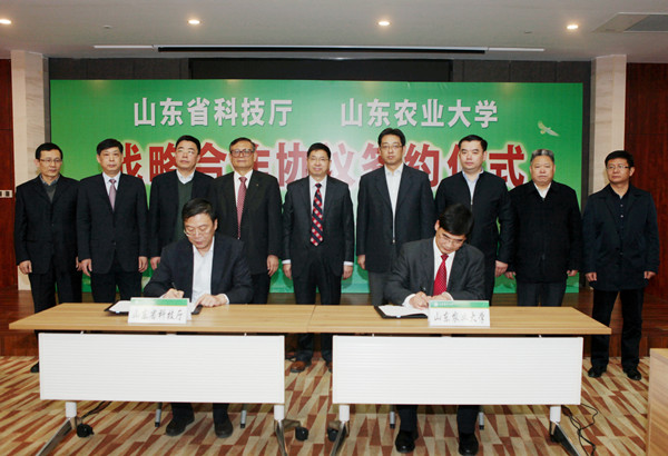 3月8日,山东农业大学与山东省科技厅战略合作协议签约仪式在我校举办。双方签署了《山东省科技厅与山东农业大学战略合作协议》和《山东省科技厅与山东农业大学共建作物生物学国家重点实验室协议》,围绕科研体制机制改革和落实协议重点任务进行座谈,并实地考察作物生物学国家重点实验室建设情况。